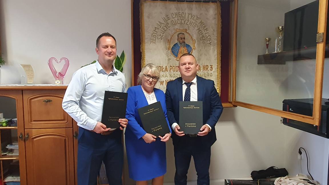 Umowę podpisali prezes naszego Klubu Łukasz Mężyk oraz dyrektorzy Pani mgr Ewa Bogdańska i Pan mgr Jerzy Galara .